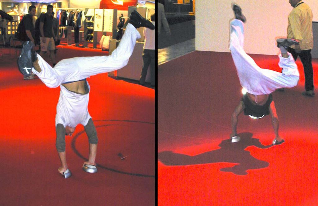 During the ispo show, a team of acrobatic dancers took an interest in pod and took it through its paces; with both hands …